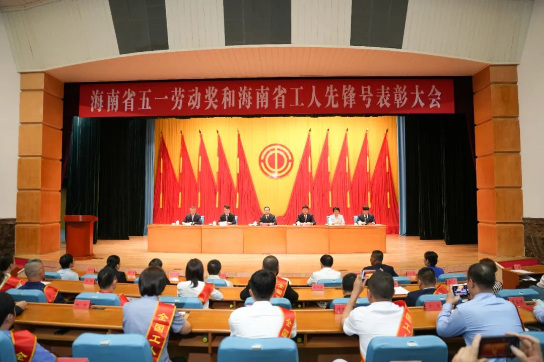 会议宣读了《中华全国总工会关于表彰2023年全国五一劳动奖和全国工人先锋号的决定》《海南省总工会关于表彰2023年海南省五一劳动奖和海南省工人先锋号的决定》,现场表彰了全国五一劳动奖章获得者和获得全国工人先锋号的先进集体、先进个人,及海南省五一劳动奖章获得者和获得海南省工人先锋号的班组。